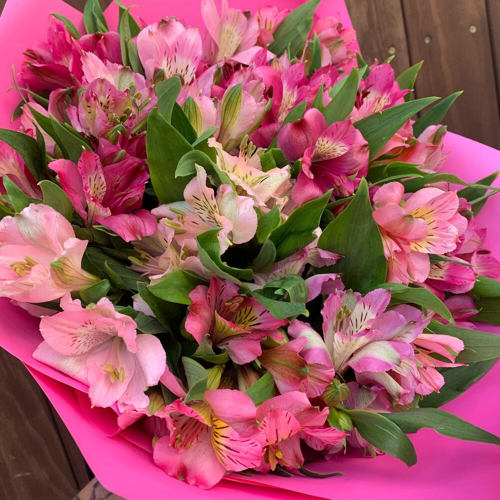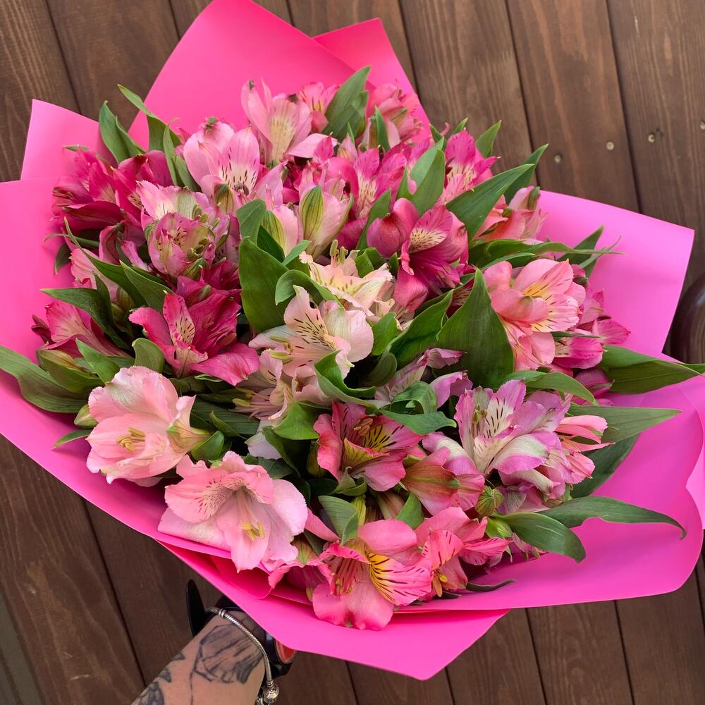 Альстромерия – 17 шт.Лента атласная – 1 шт.Упаковка дизайнерская – 1 шт.