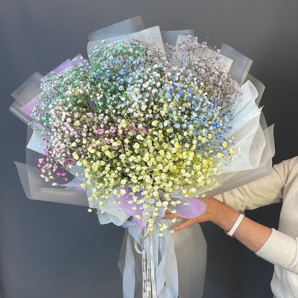 Букет с разноцветной гипсофилой «Радужное облачко»