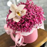 Яркая, насыщенная шляпная коробка из воздушной гипсофилы,с долгоиграющей Орхидеей мини понравится яркой и энергичной получательнице и будет долго радовать ее!Также необычная композиция подойдет для любого случая и торжества!К каждой композиции мы приложим конверт с инструкцией по уходу,средство для продления жизни цветов и подпишем открытку с Вашими пожеланиями!С Уважением VaraBoro flowers