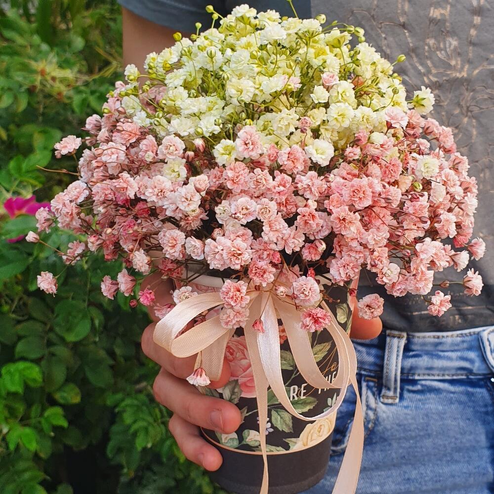 Гипсофила – 2 шт.Лента атласная – 1 шт.Губка флористическая – 1 шт.стакан кофейный – 1 шт.