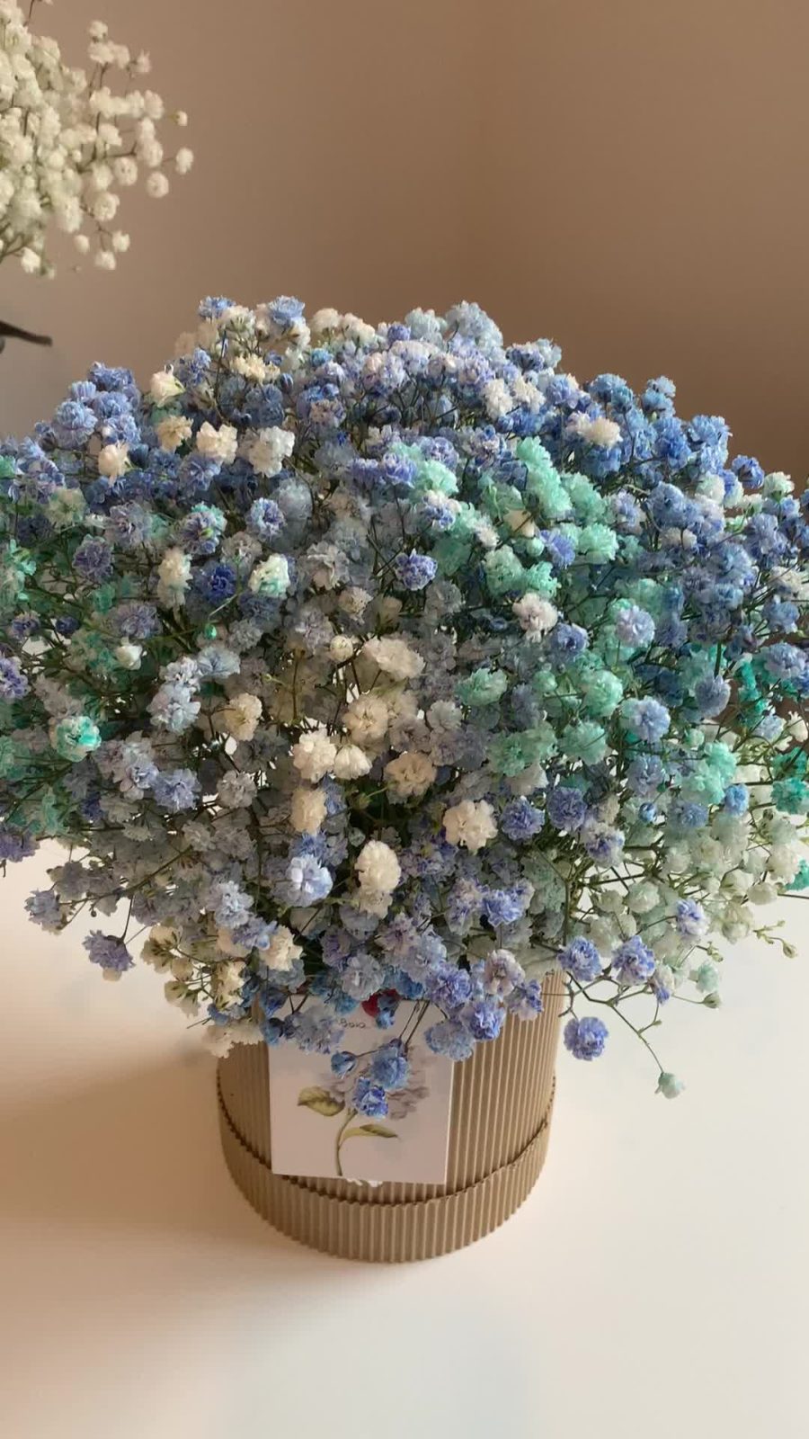 Гипсофила – 6 шт.Коробка шляпная – 1 шт.Оазис флористический – 1 шт.