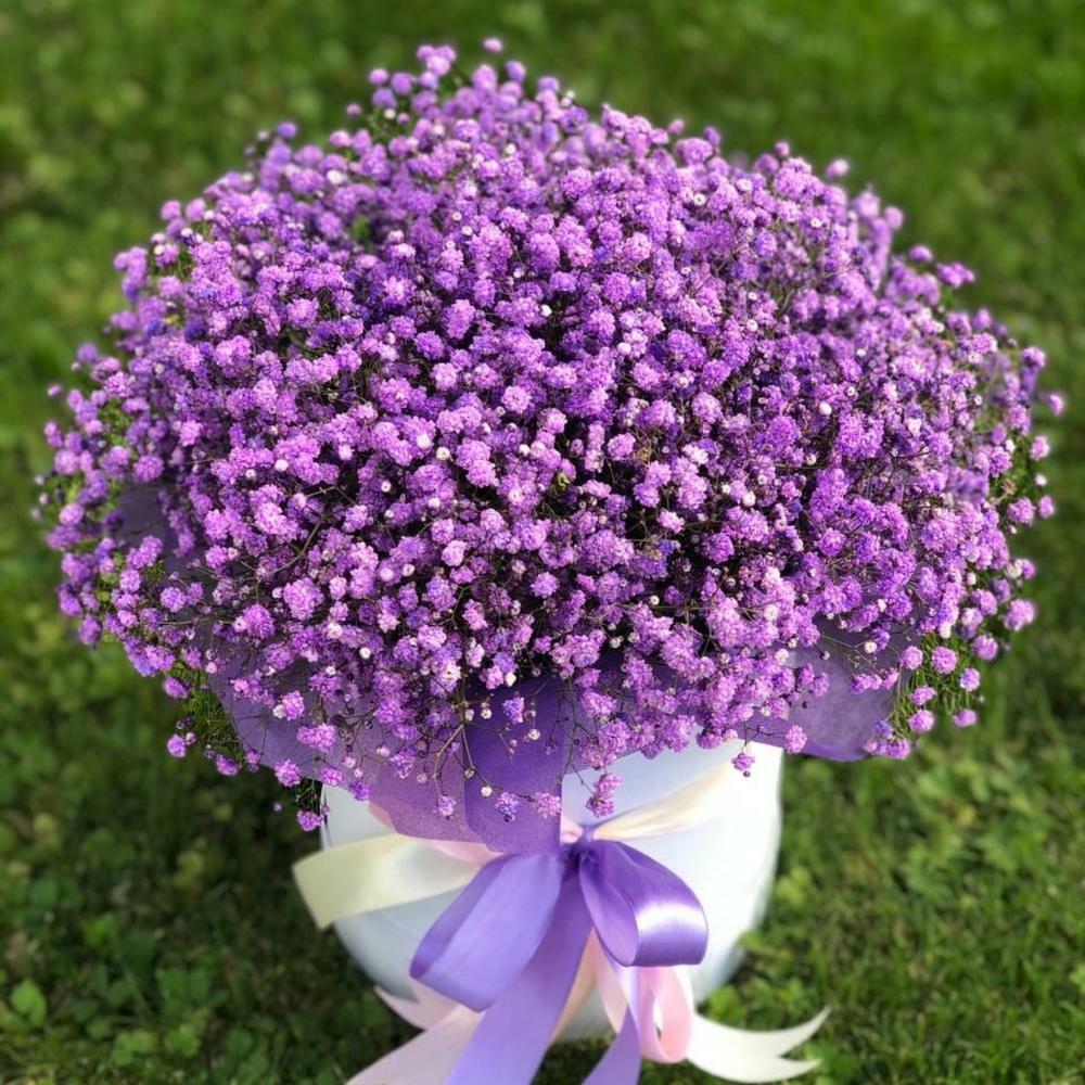 Композиция из фиолетовой Гипсофилы в коробке