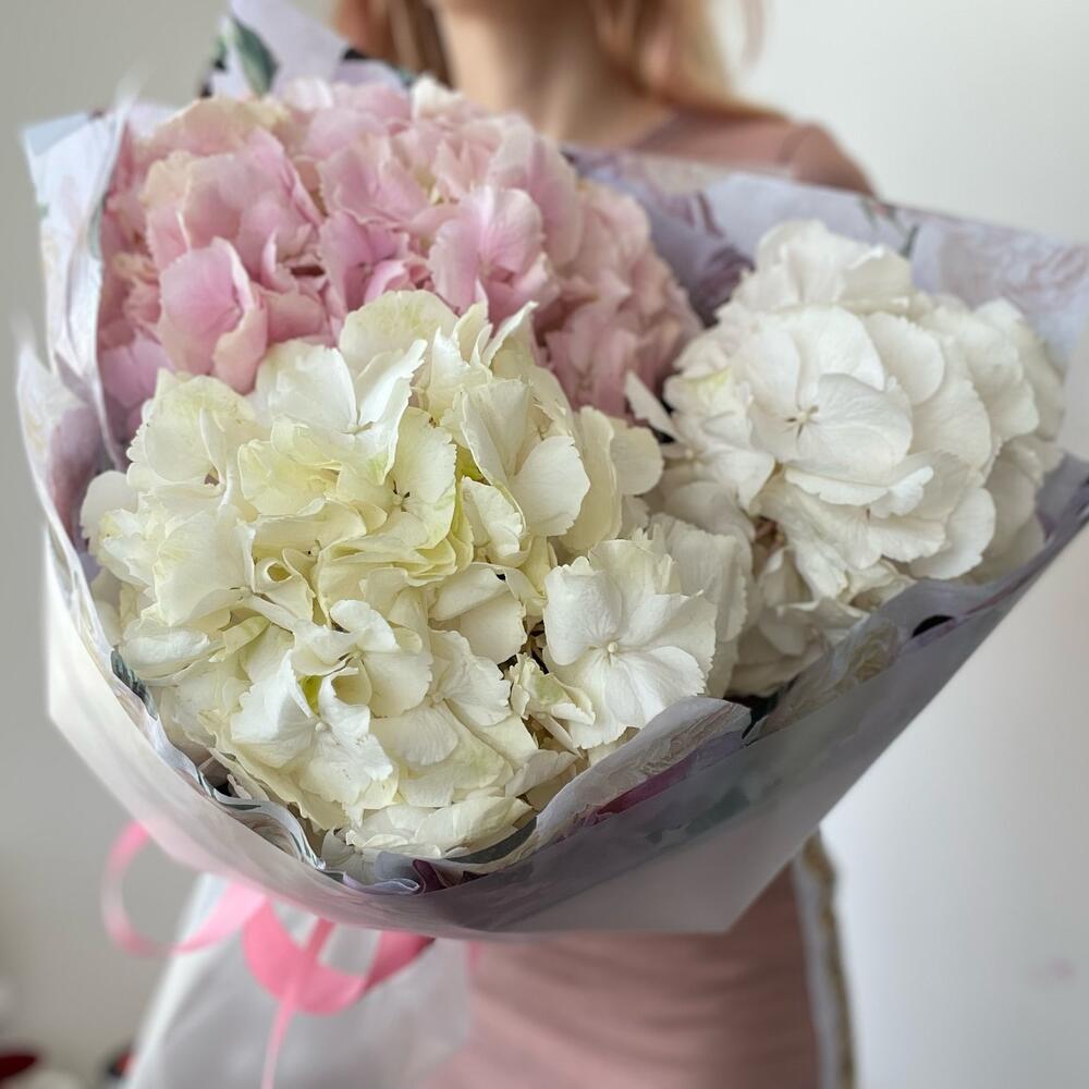 Монобукет из розовых и белых гортензий