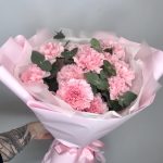 Нежно-розовой букет с диантусом и эвкалиптом