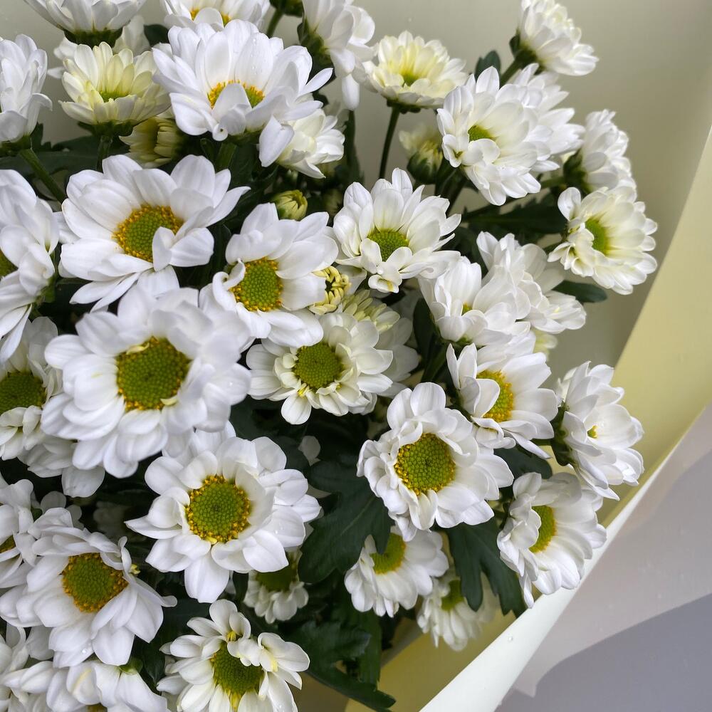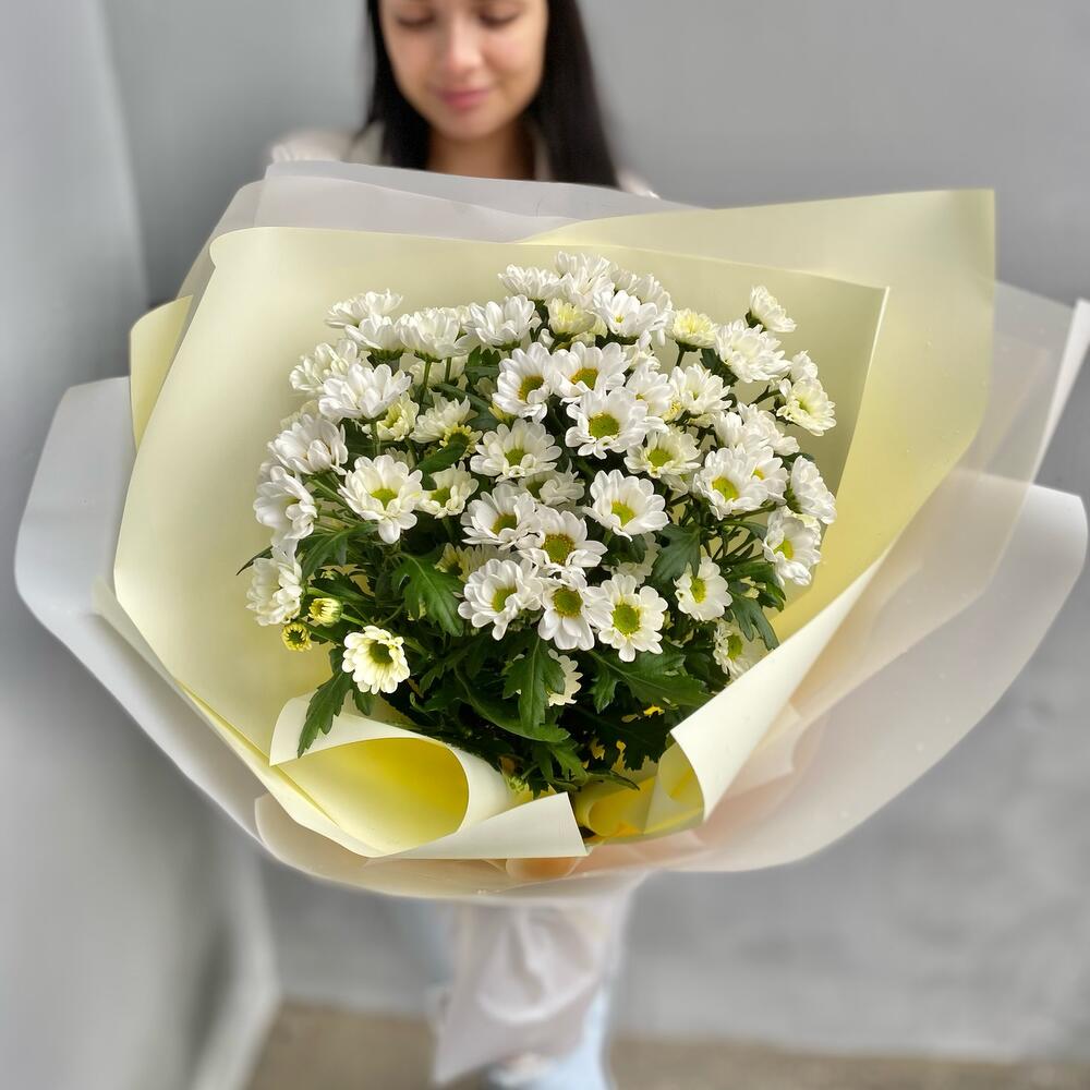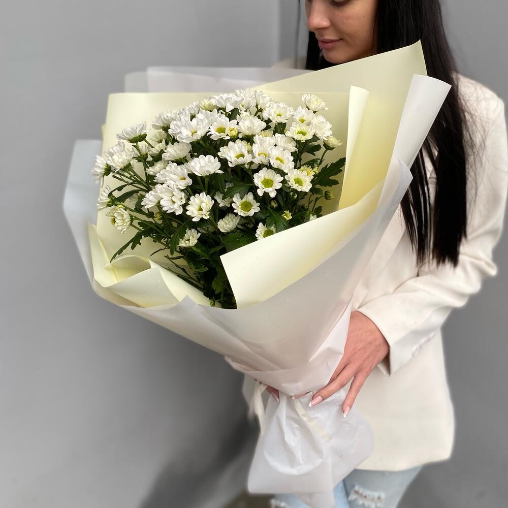 Хризантема кустовая – 7 шт.Лента атласная – 2 шт.Упаковка дизайнерская – 5 шт.