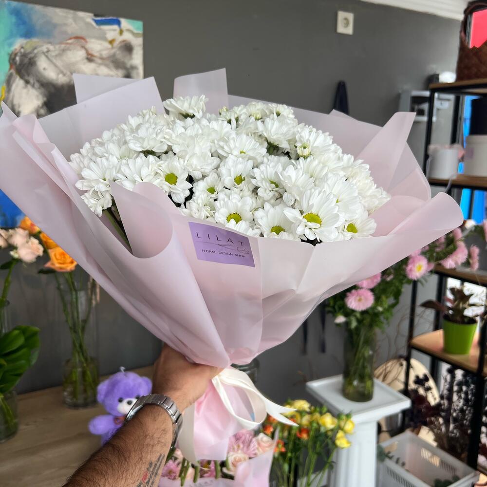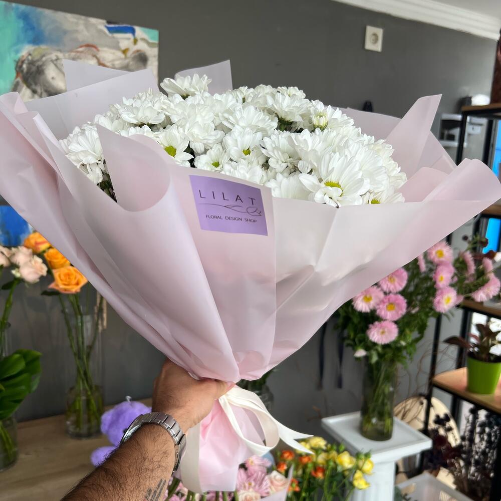 Букет хризантема Баккарди и ирисы
