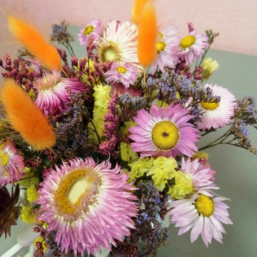Гелихризум – 15 шт.Лагурус (сухоцвет) – 5 шт.Лимониум – 1 гр.Статица – 1 шт.Оазис флористический – 1 шт.велосипед декоративный – 1 шт.