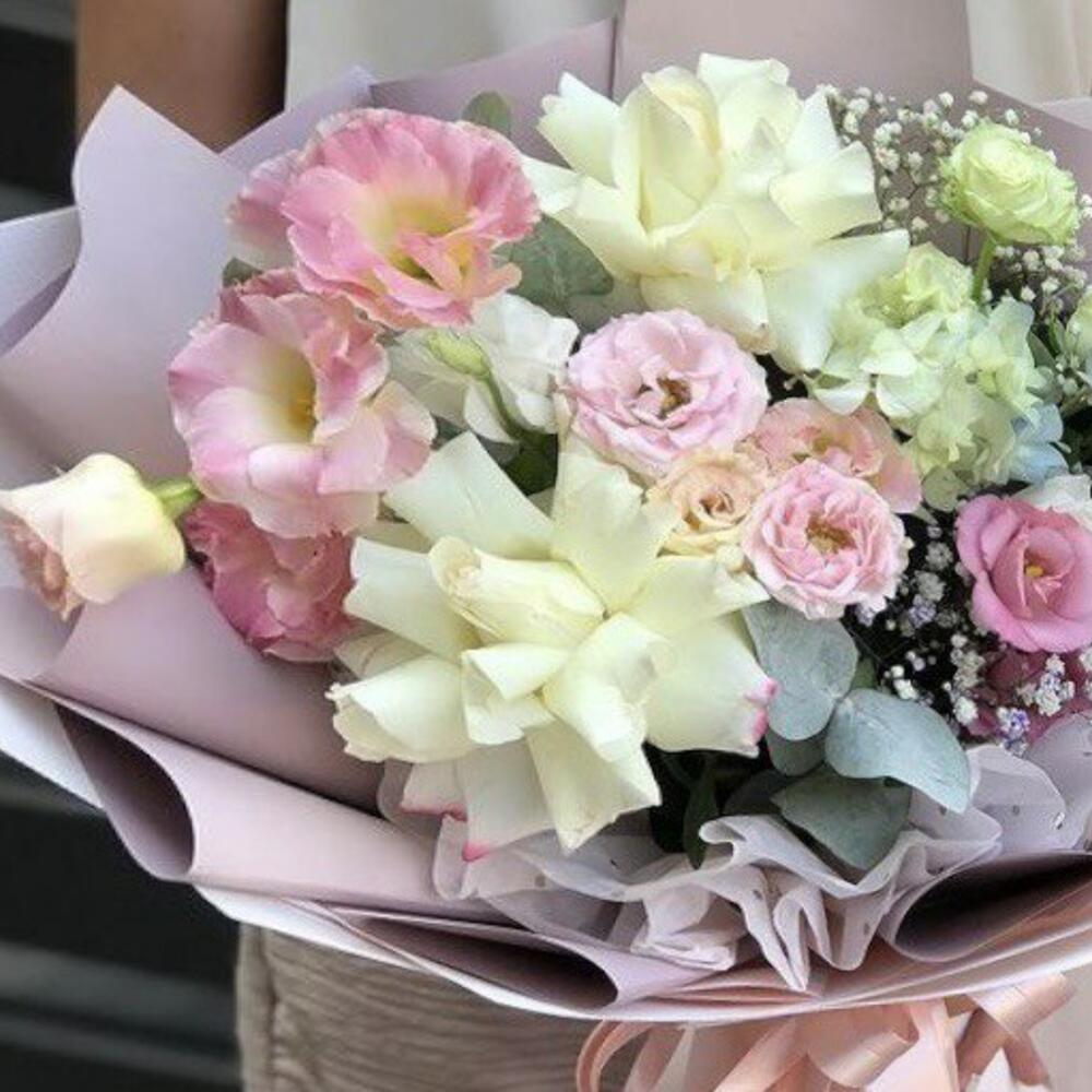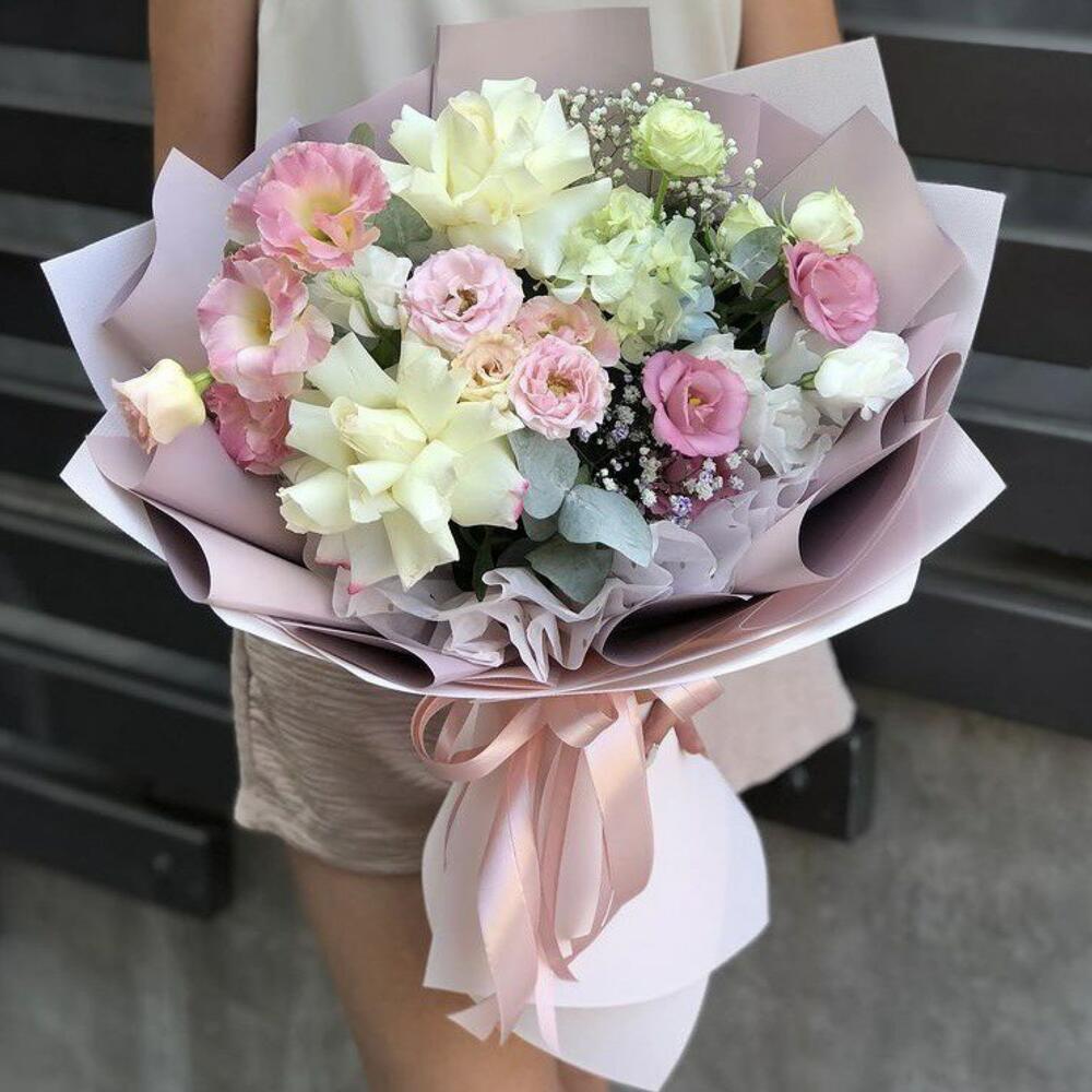Гвоздики, Кустовые розы, Лизиантусы, Пионовидные розы, Розы
