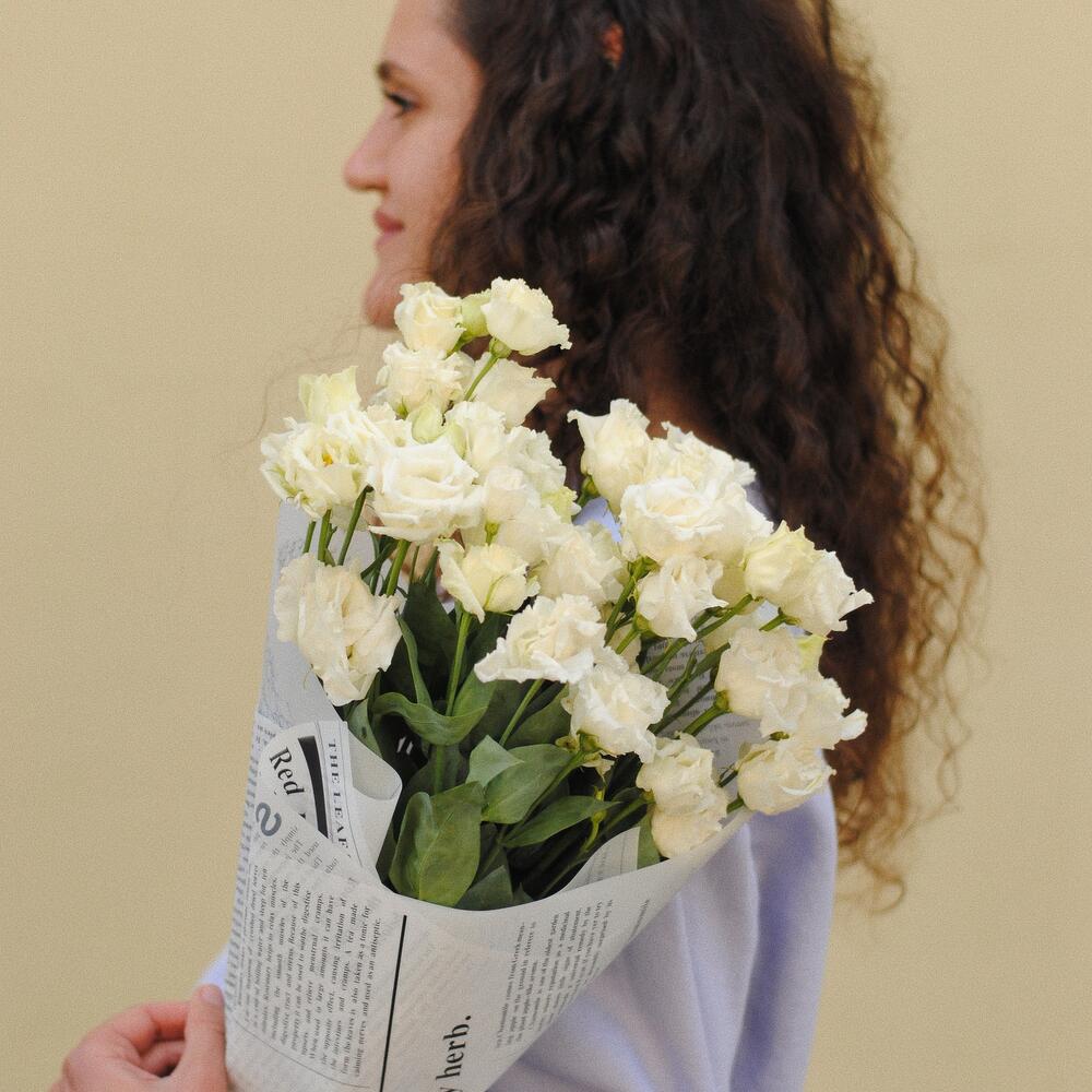 Букет из эустомы и альстромерии в стильной упаковке "Коктобе"