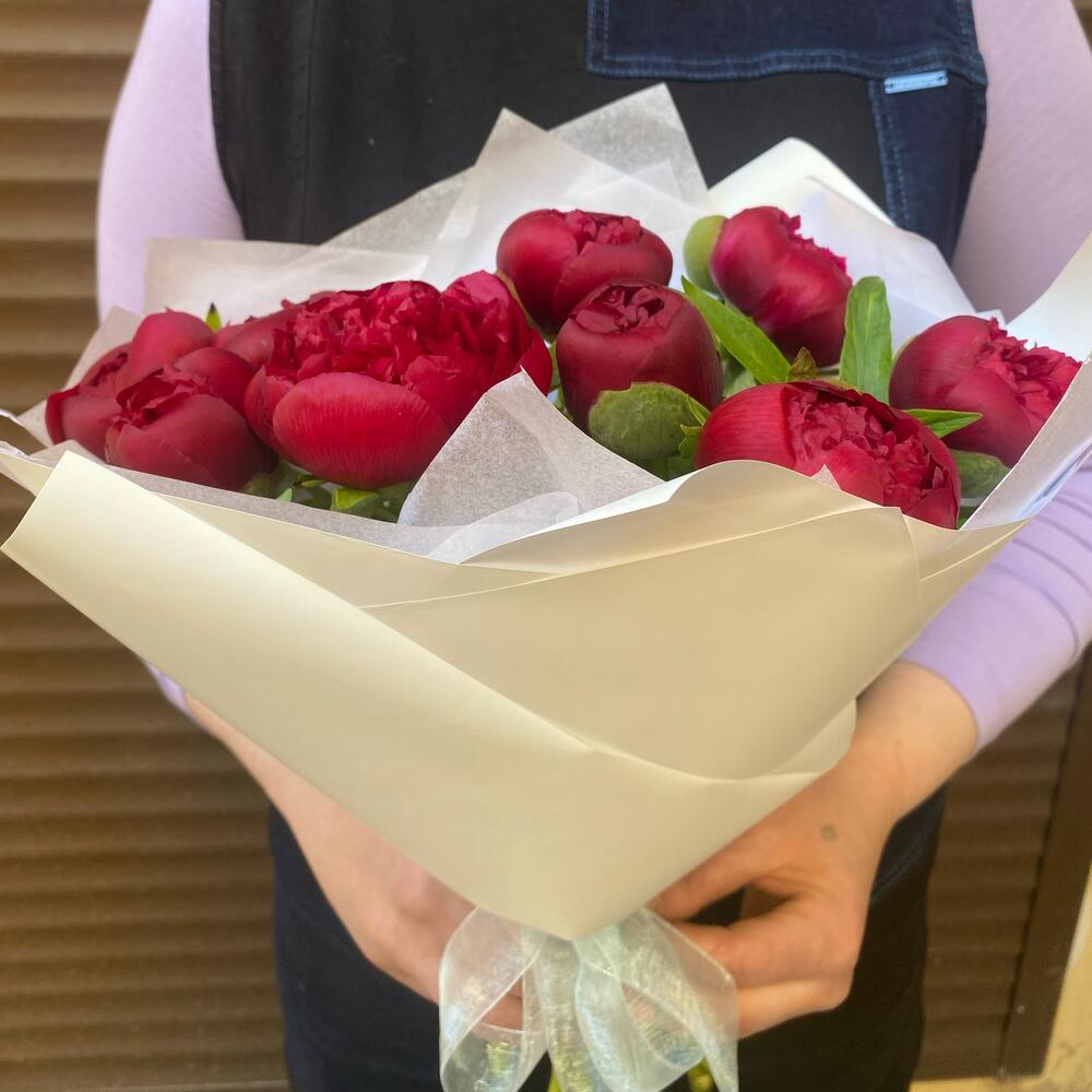 Букет из насыщенных красных пионов внесёт в вашу жизнь ярких красок, которых сейчас не хватает