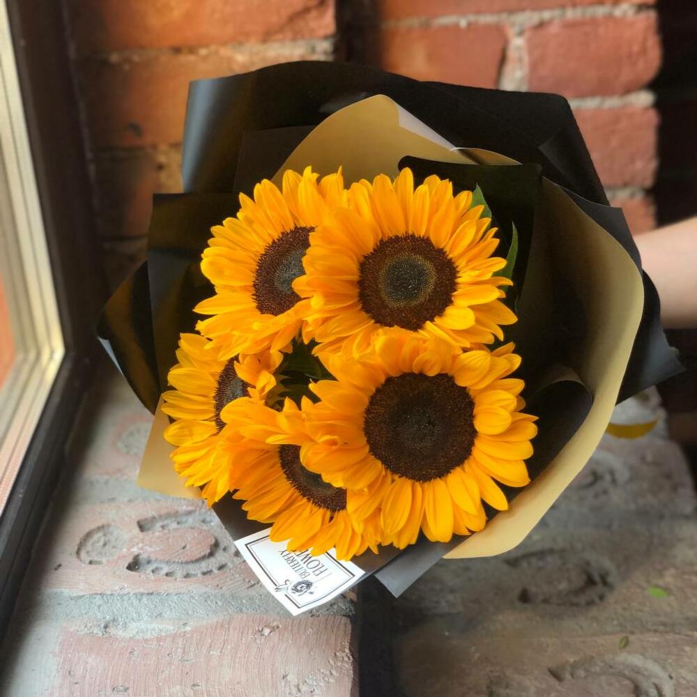 Букет из 5 подсолнухов в стильной упаковке “Эндюранс”