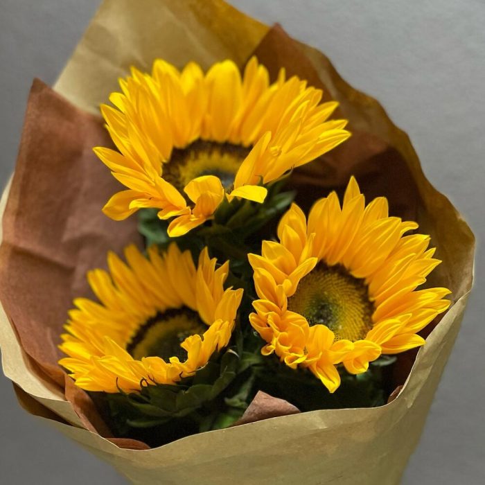 Лента атласная – 1 шт.Тишью – 2 шт.Подсолнух – 3 шт.Крафт – 1 шт.