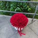 Роза Эквадор – 101 шт.Коробка шляпная большая – 1 шт.Оазис флористический – 1 шт.бант атласный – 1 шт.