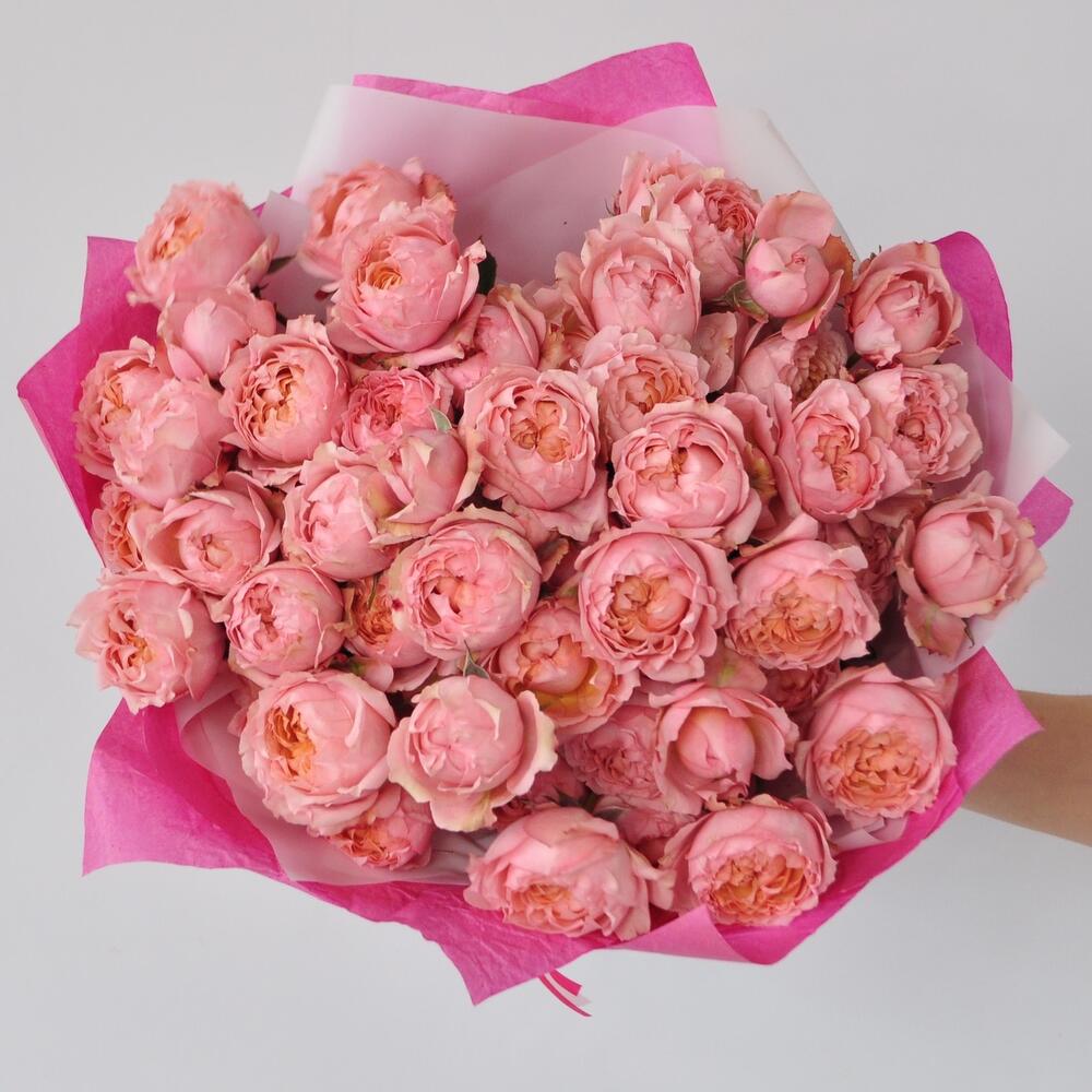 Лента атласная – 1 шт.Роза кустовая пионовидная – 11 шт.Упаковка дизайнерская – 2 шт.