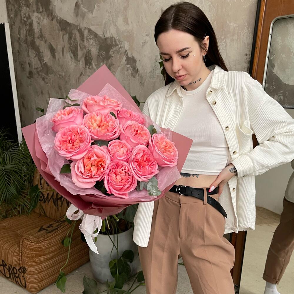 Эвкалипт – 3 шт.Роза пионовидная – 11 шт.Упаковка дизайнерская – 3 шт.