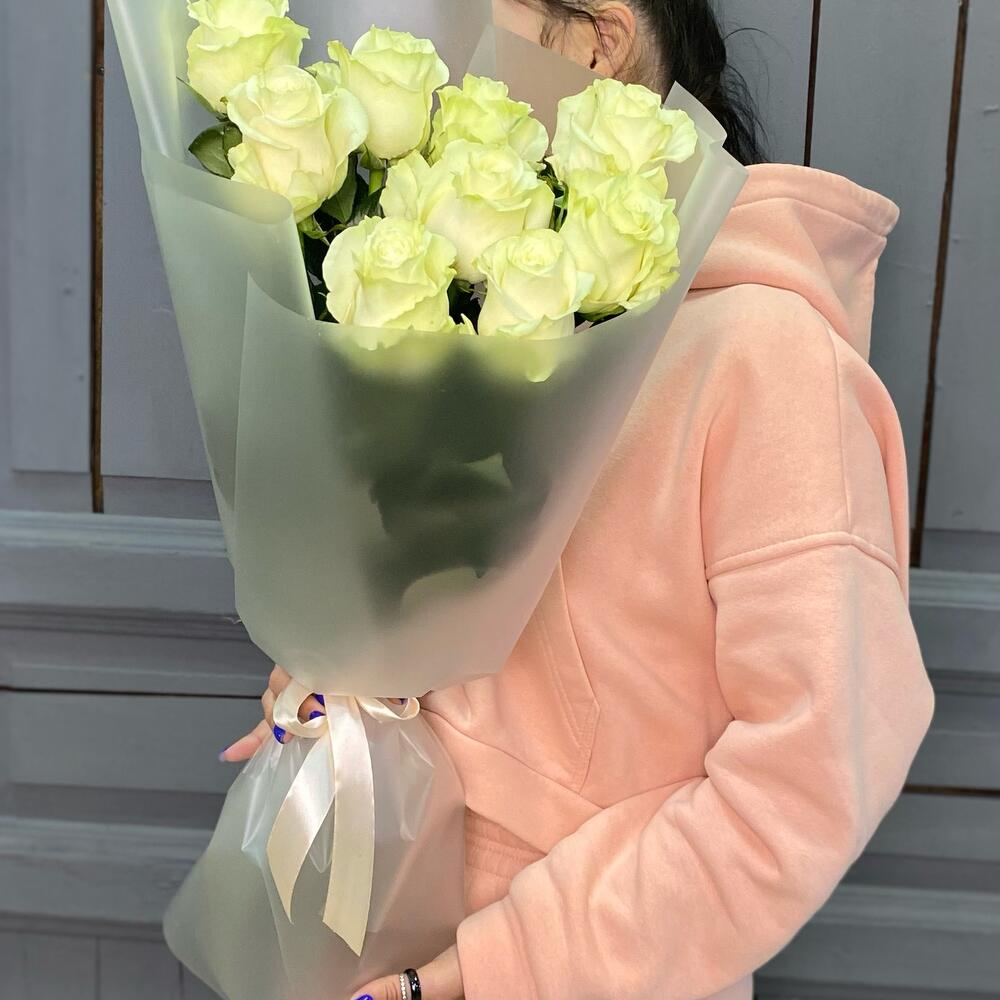 9 белых роз 50 см