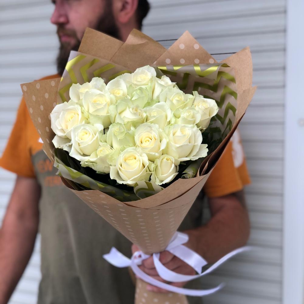 Метки: 19 роз, Белые розы, На свадьбу, от 2000 до 3000 руб, Роза 50 см