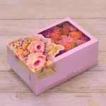 “Атлас☁️” – цветочная композиция с зефиром в деревянном ящике