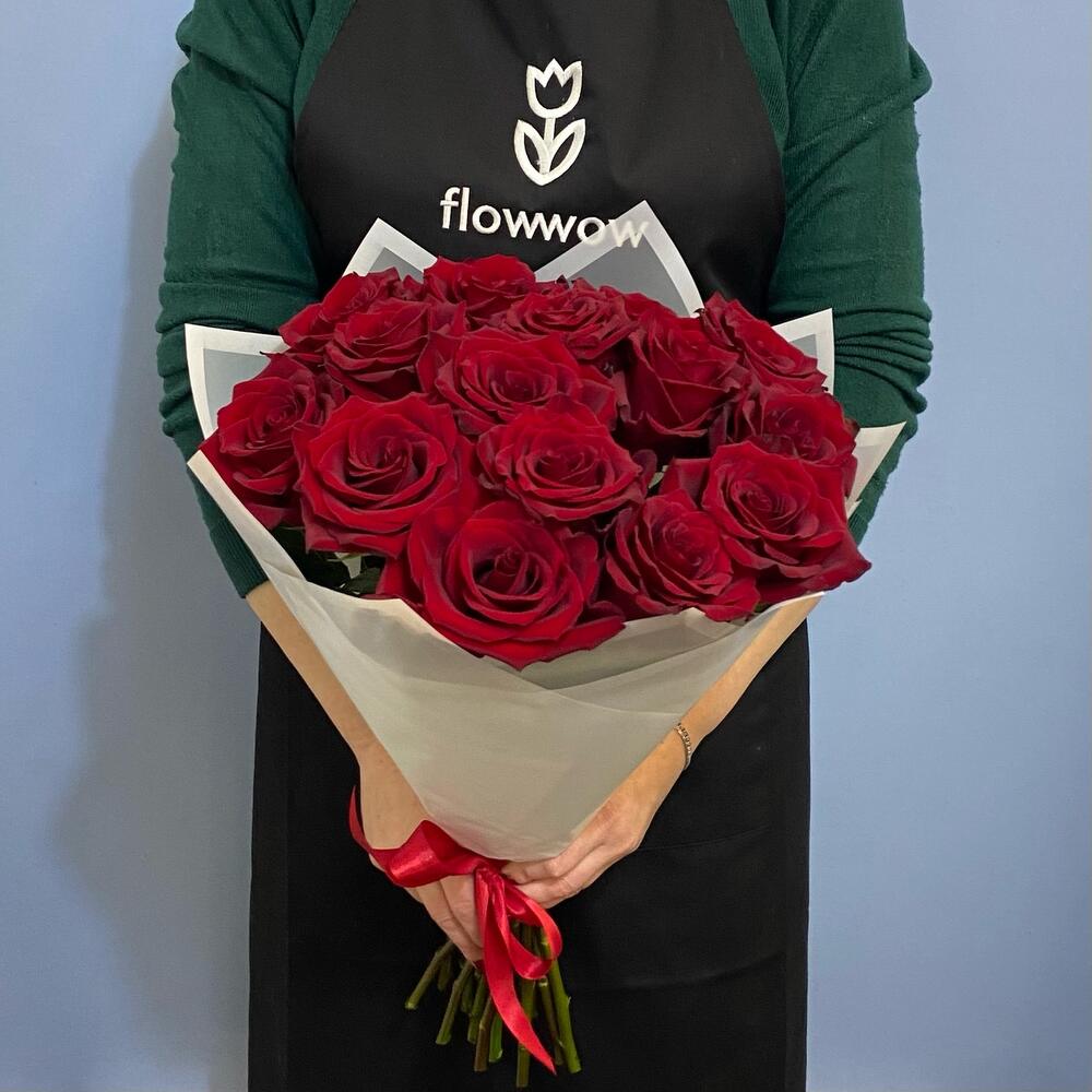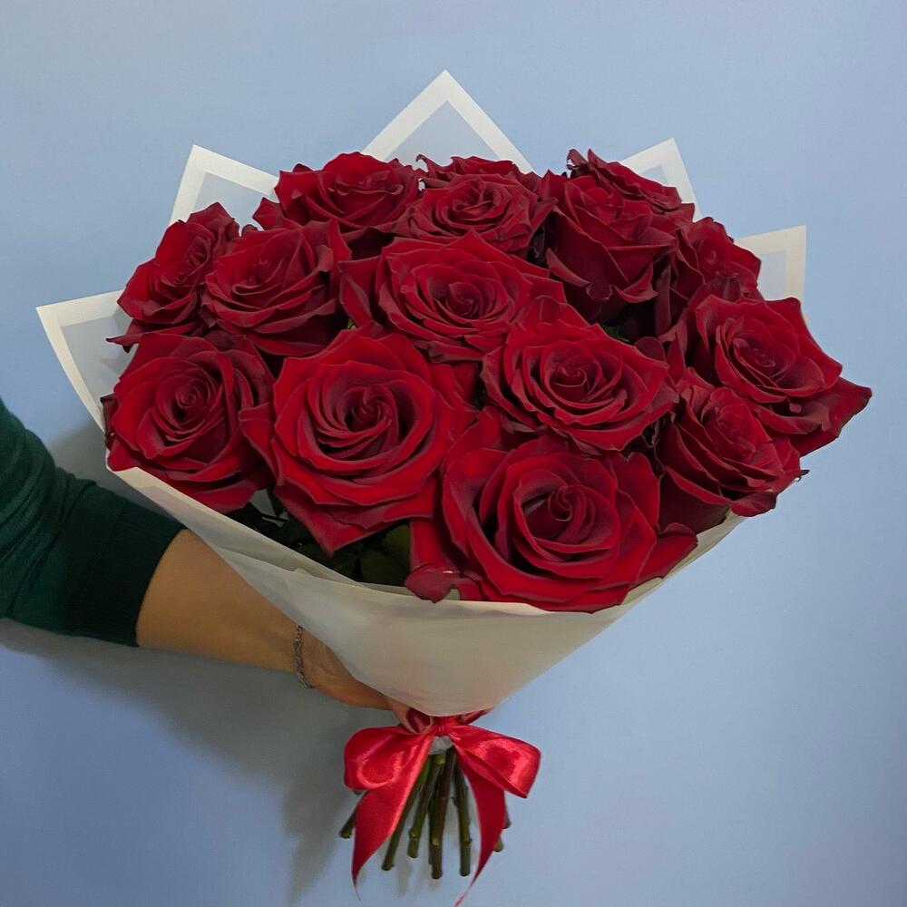 Букет 15 алых роз Премиум