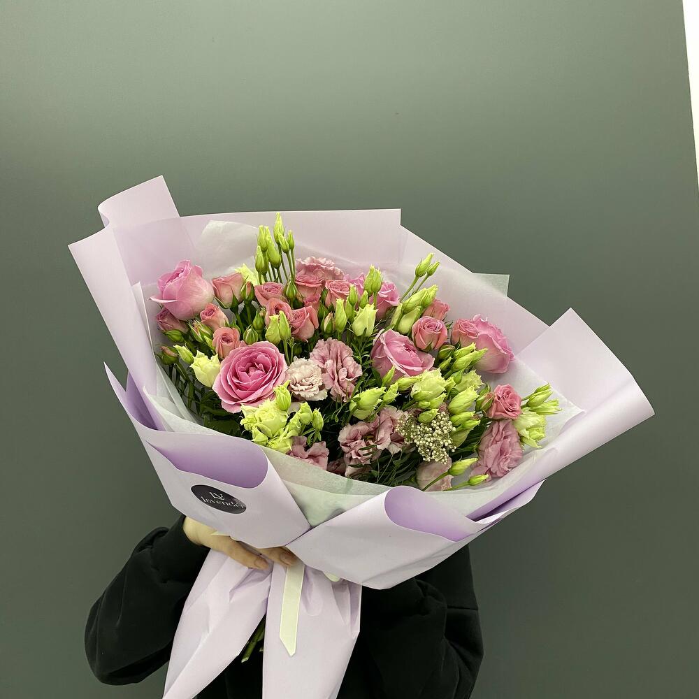 Гвоздики, Лизиантусы, Розы, Тюльпаны