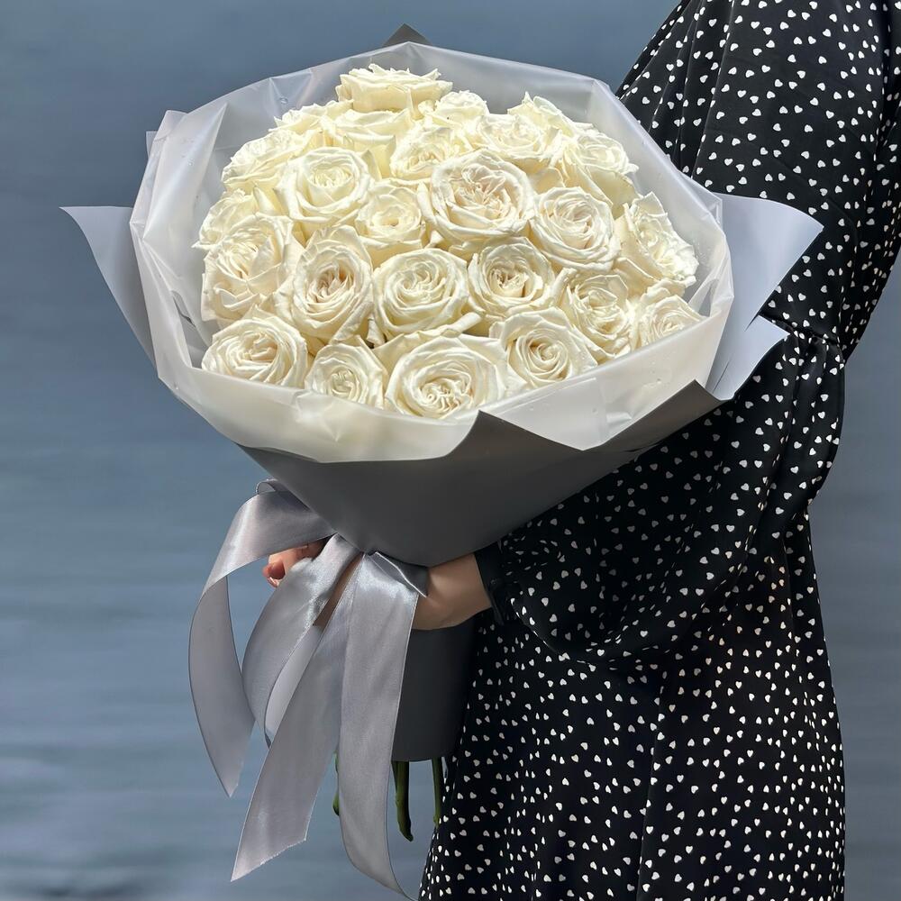 Букет из 25 пионовидных белых роз