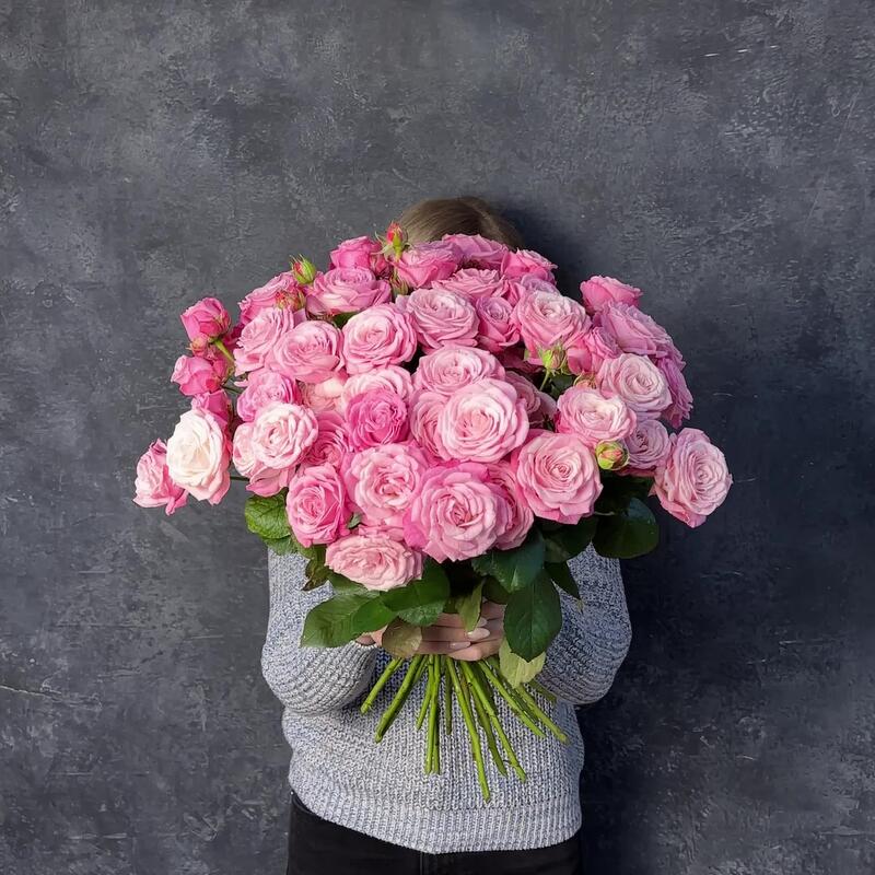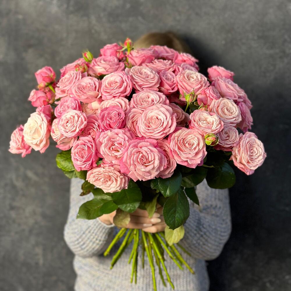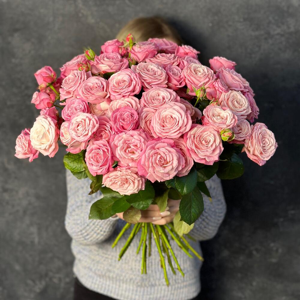 Букет из 25 пионовидных розовых кустовых роз