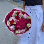 Гвоздики, Пионовидные розы, Розы