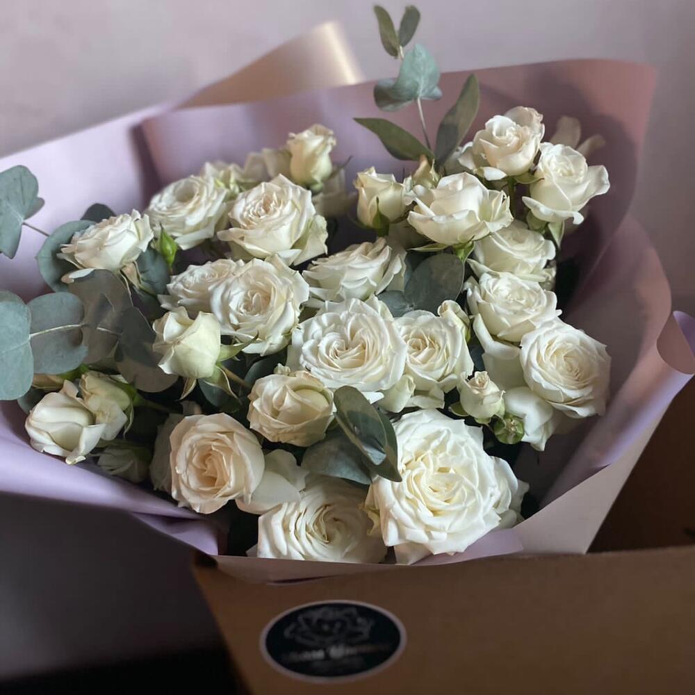 Букет из пионовидной кустовой розы «Белоснежка»