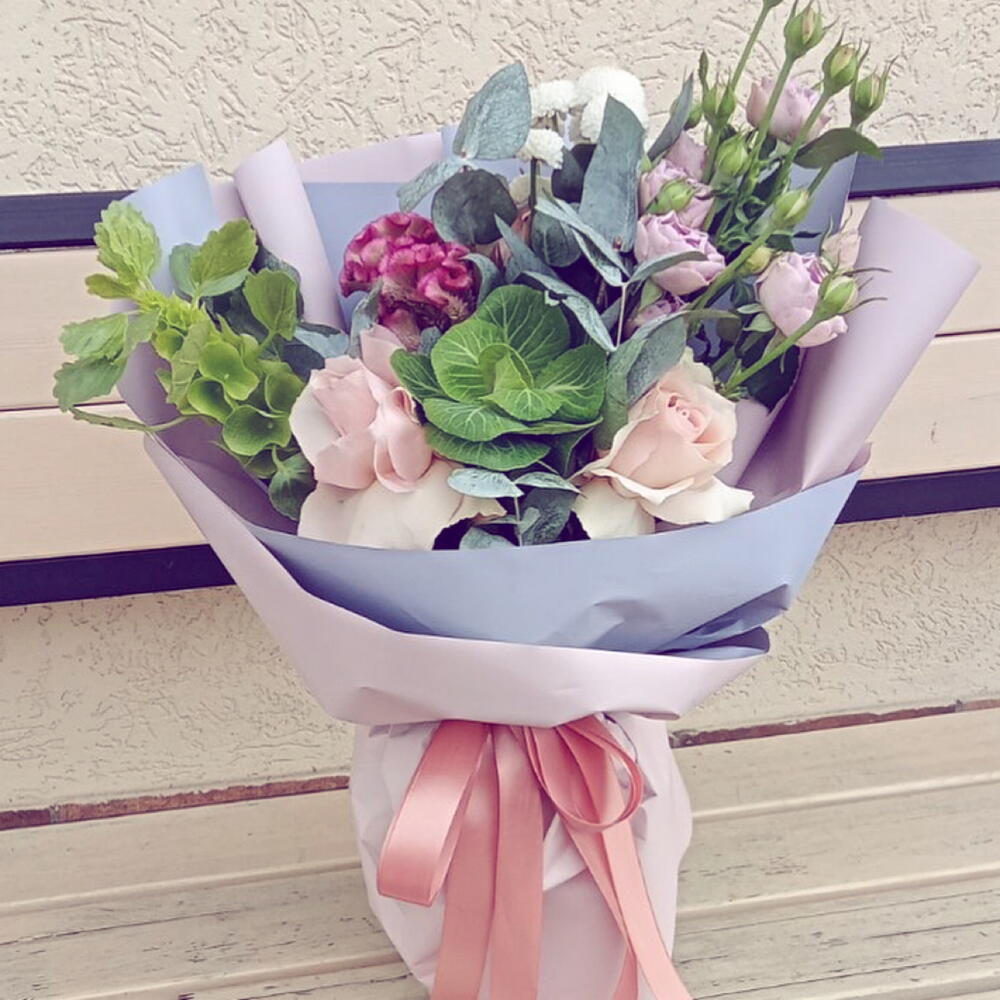 Кустовые розы, Лизиантусы, Розы, Сухоцвет