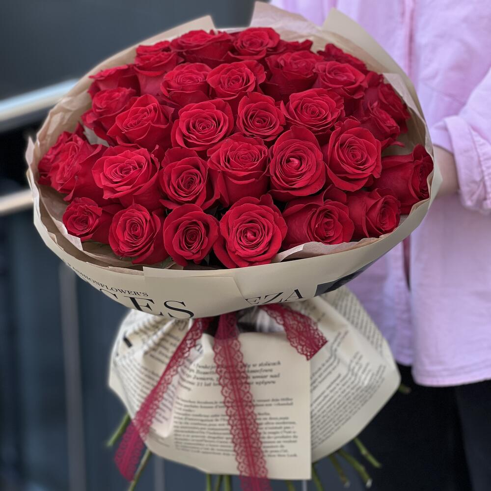 Красная роза – 35 шт. Оформление – 1 шт.