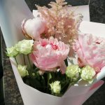 Букет пионов с кустовой розой и астильбой