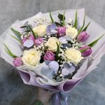 Букет с черничными тюльпанами и зефирными розами