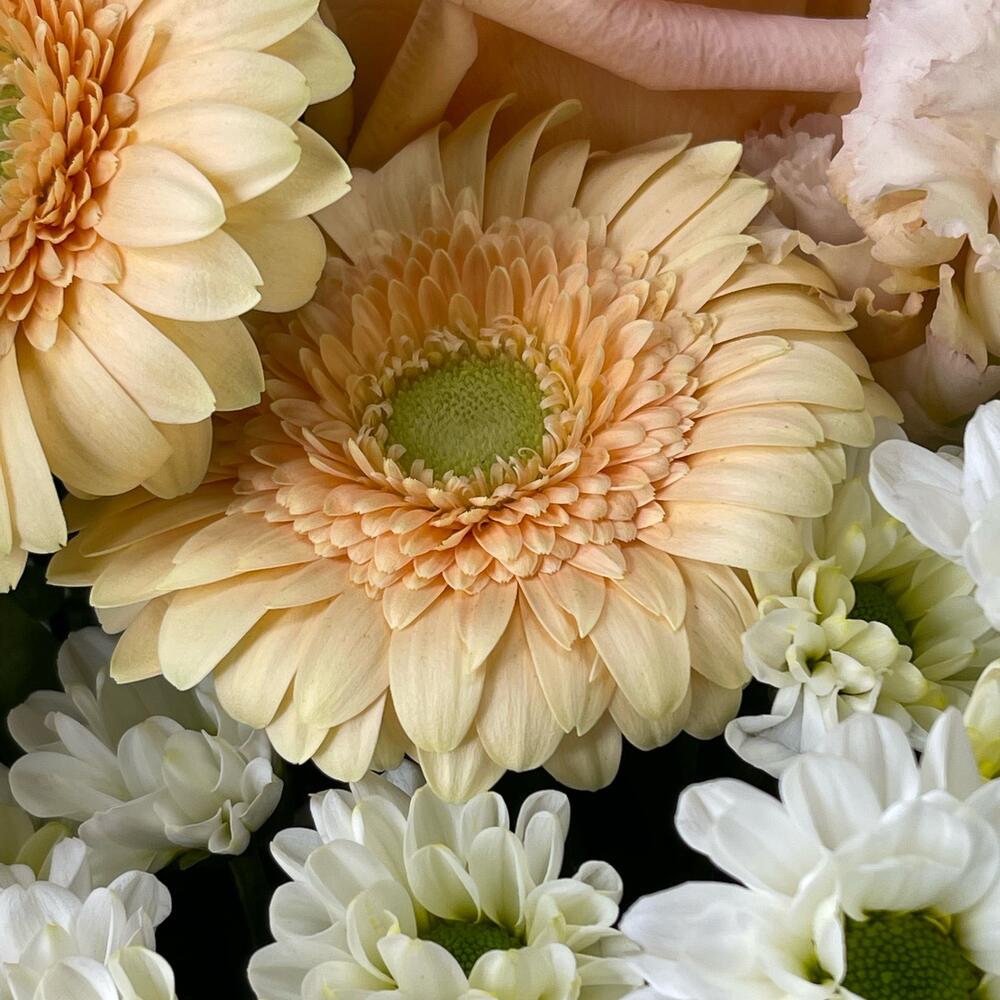Категории: Герберы, Лизиантусы, Розы, Хризантемы