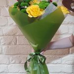Букет в желто-зеленых тонах для тех, кто любит все естественное. Букет обернут натуральным крафтом в таких же тонах. Все вместо симфолизирует близость к природе. К подарку обычно прикладывается наша карточка с красиво напечатанным текстом вашего послания. К букетам обычно прилагается рекомендация по уходу и объяснением причин. При доставке температура в машине курьера контролируется нами в зависимости от сезона.