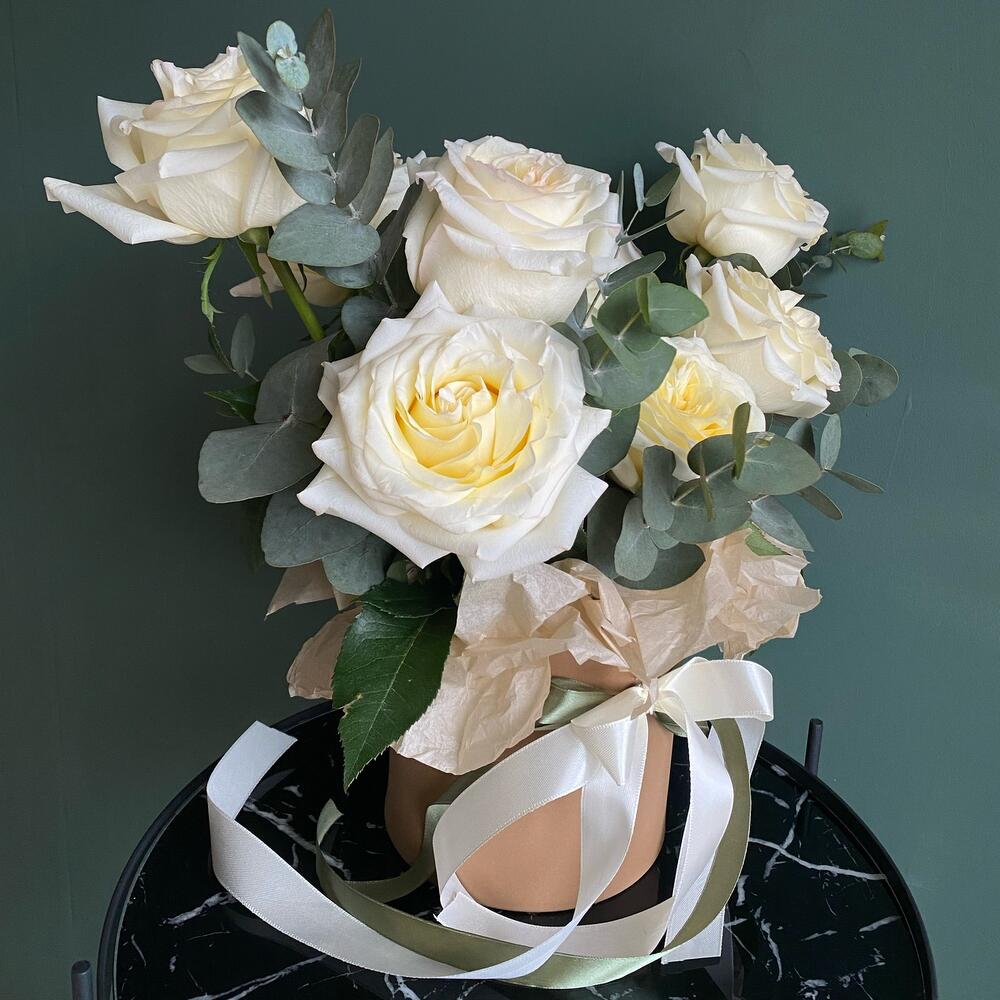 пион роза одноголовая – 9 шт.Эвкалипт – 5 шт.Оазис флористический – 1 шт.Коробка крафтовая – 1 шт.бант атласный – 1 шт.транспортировочная упаковка – 1 шт.