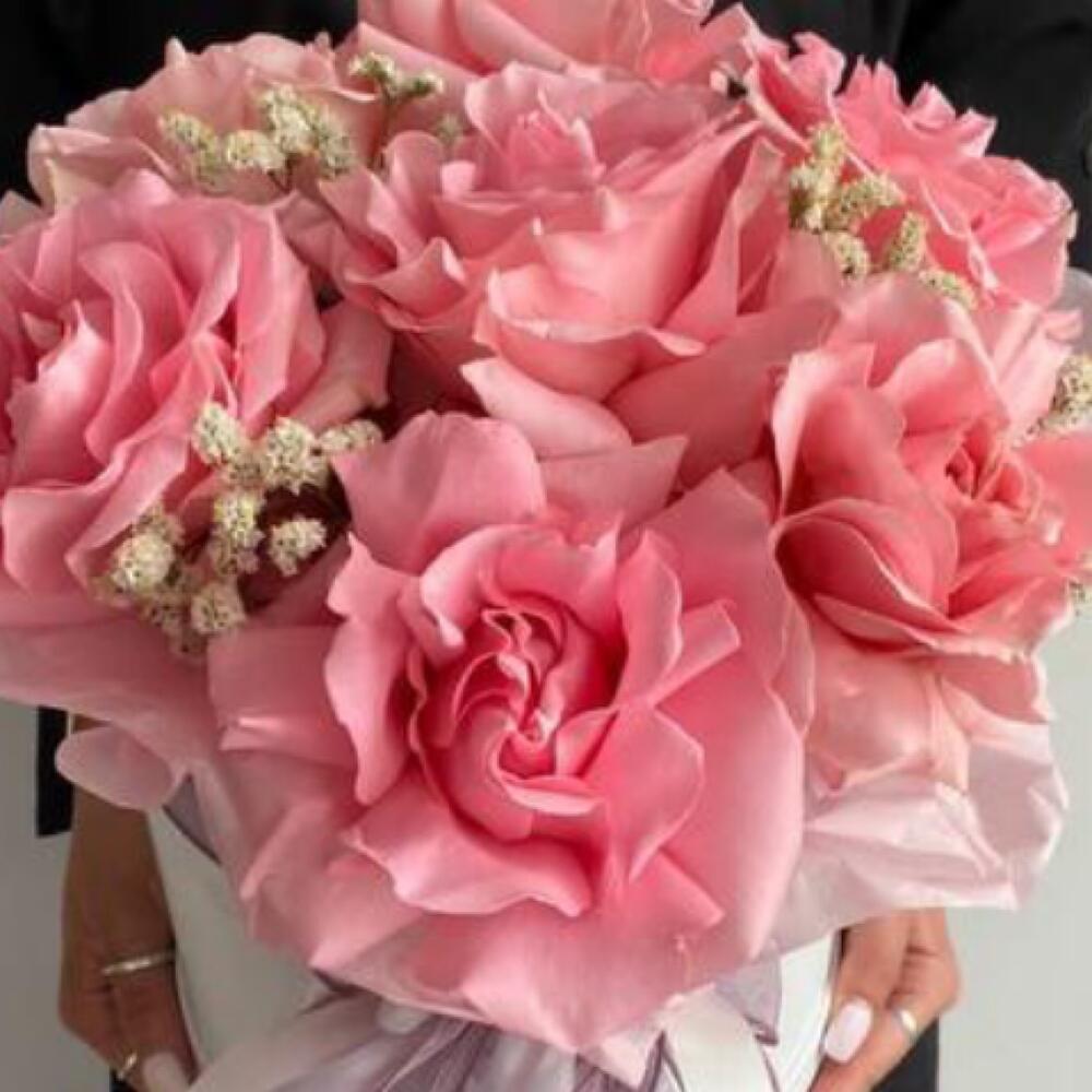 Коробка – 1 шт.Оазис флористический – 1 шт.Роза – 7 шт.Лимониум – 1 шт.