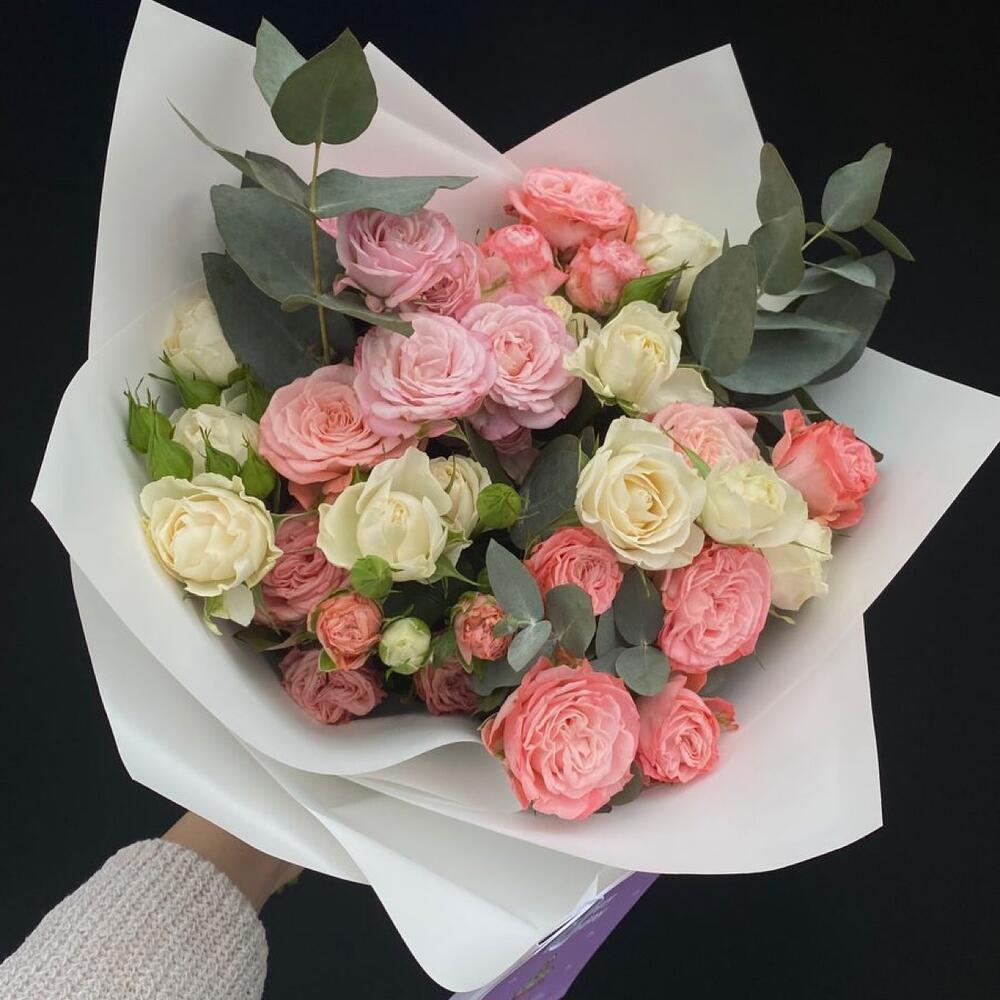 кустовые пионовидные розы – 11 шт. Упаковка дизайнерская – 1 шт. Открыточка с вашими пожеланиями – 1 шт. инструкция по уходу за цветами – 1 шт.
