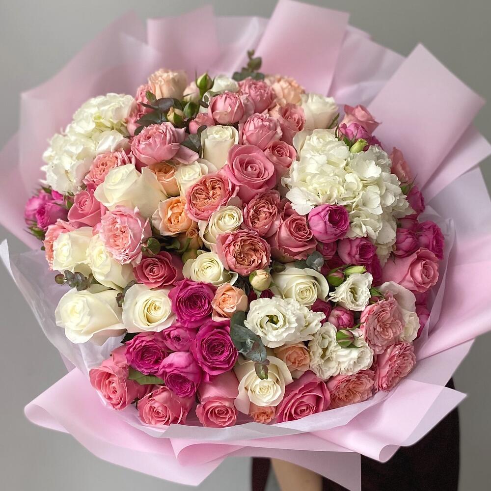 Гвоздики, Кустовые розы, Лизиантусы, Пионовидные розы, Розы