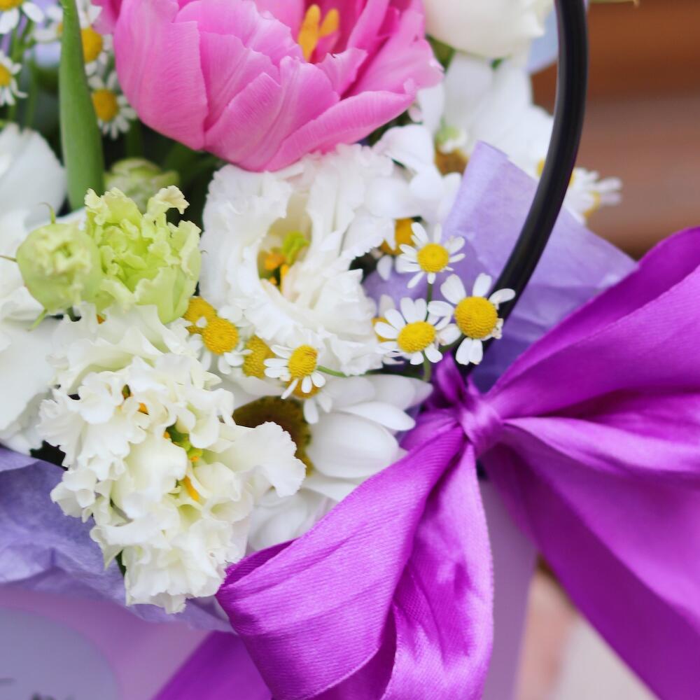 Нежная композиция с тёплым, весенним настроением Сиренево-розовая гамма – идеальный и всеми любимый вариант подарочного букета, который будет очень долго радовать свою получательницу.В подарок к букету шоколадка для прекрасной получательницыМы также можем отправить вместе с букетом конфеты, шоколад ручной работы или б/а вино по вашим пожеланиям, просто напишите нам в личные сообщения Предоставляем исключительный сервис и заботу о клиенте