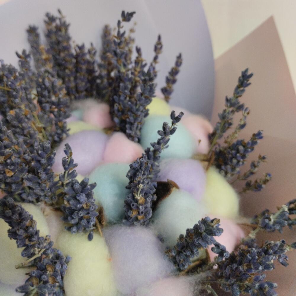 Хлопок – 11 шт.Лаванда – 50 шт.Бумага – 2 шт.Лента – 1 шт.