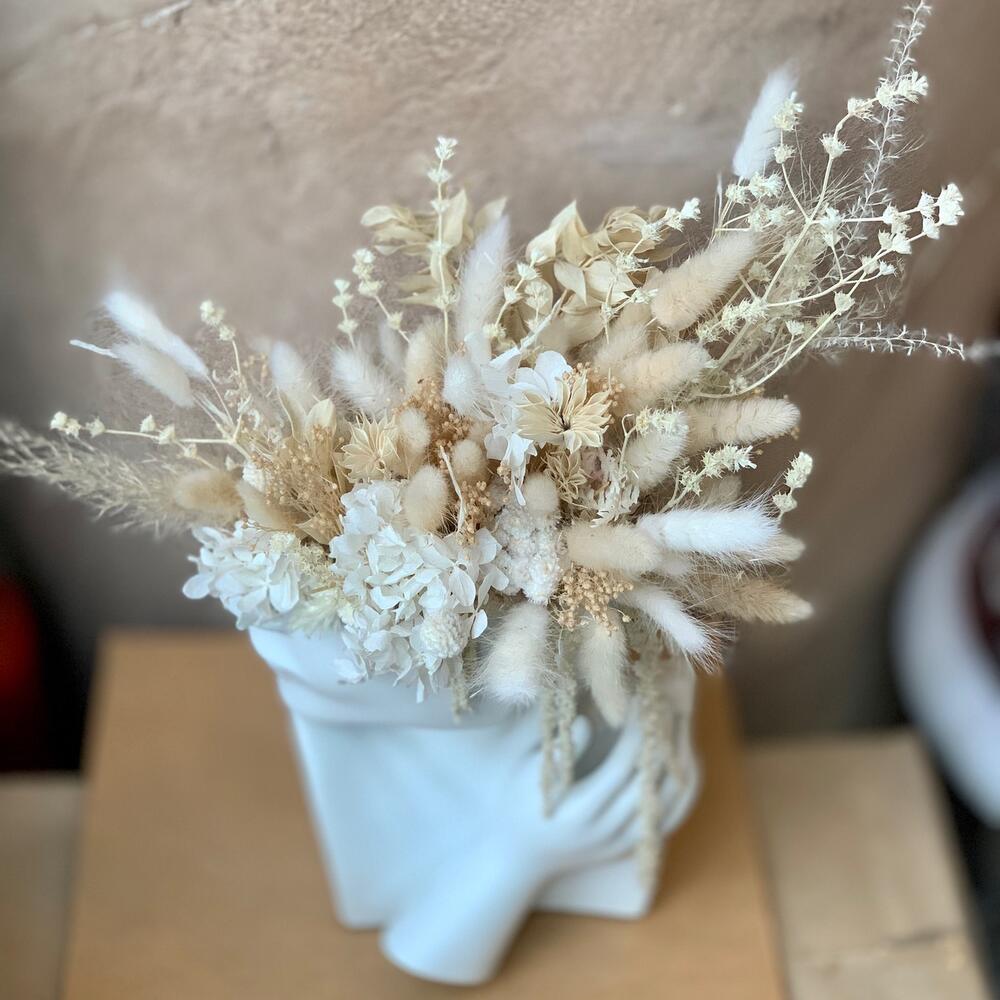 голова ваза – 1 шт.пампасная трава – 1 шт.пальма сухоцвет – 1 шт.Амарант – 1 шт.сухоцветы микс – 10 шт.Сетария – 3 шт.