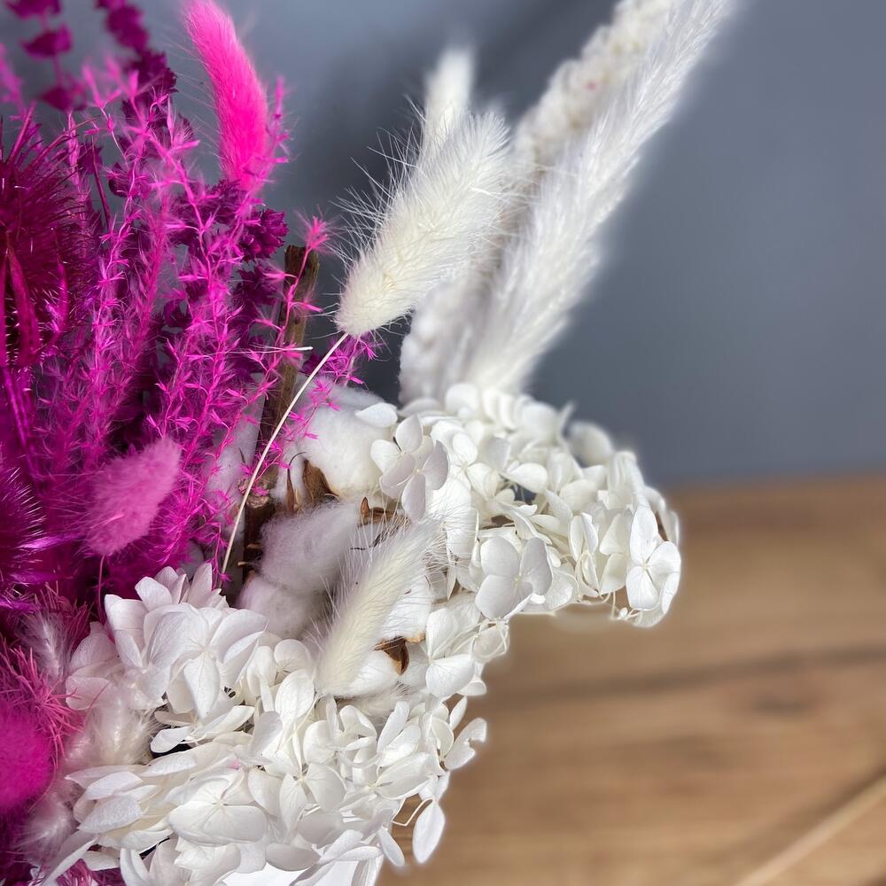 Кашпо керамическое – 1 шт.гортензия белая стабилизированная – 1 шт.Хлопок натуральный – 2 шт.Лагурус (сухоцвет) – 7 шт.шандра стабилизированная – 1 шт.аспарагус стабилизированный – 1 шт.камыш крашенный – 1 шт.сетария сухоцвет – 1 шт.овсянка крашенная – 1 шт.