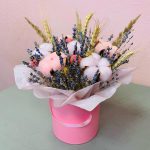 “Сиреневый туман” – композиция из гипсофилы в шляпной коробке