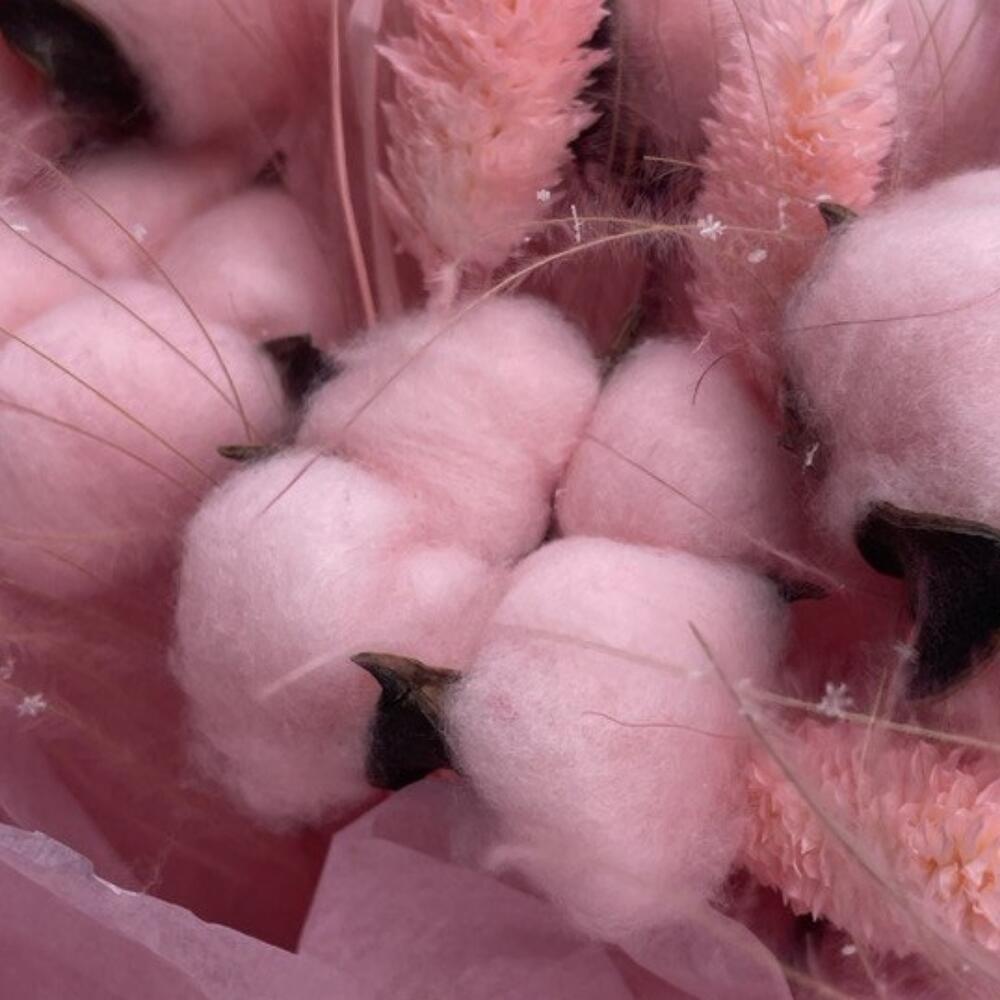 Хлопок натуральный – 9 шт.Фаларис – 13 шт.ковыль связка – 6 шт.Упаковка дизайнерская – 6 шт.Лента атласная – 1 шт.