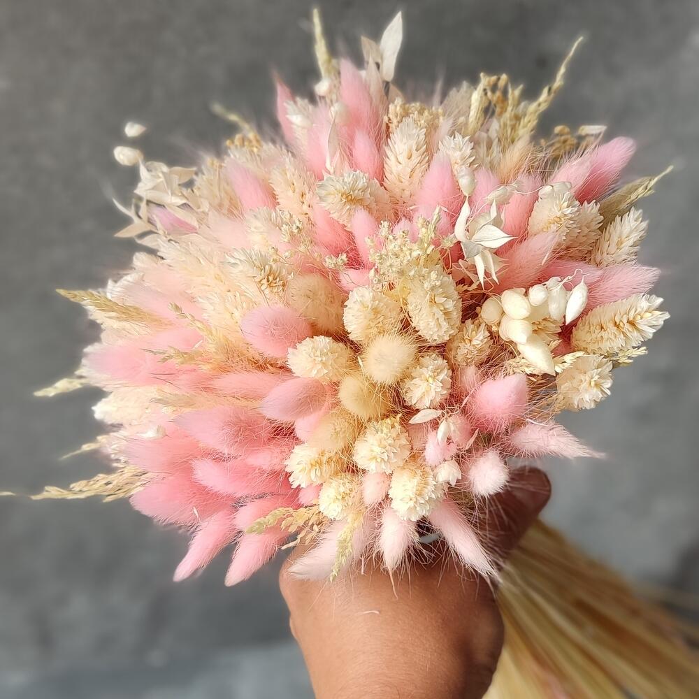 Свадебный букет из сухоцветов с нежным лагурусом. Его можно сохранить после торжества.