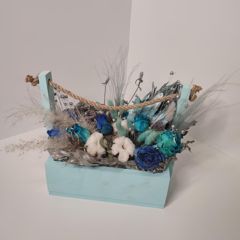 Ящик с сухоцветами(розами, хлопком, протеей, лагурусом)