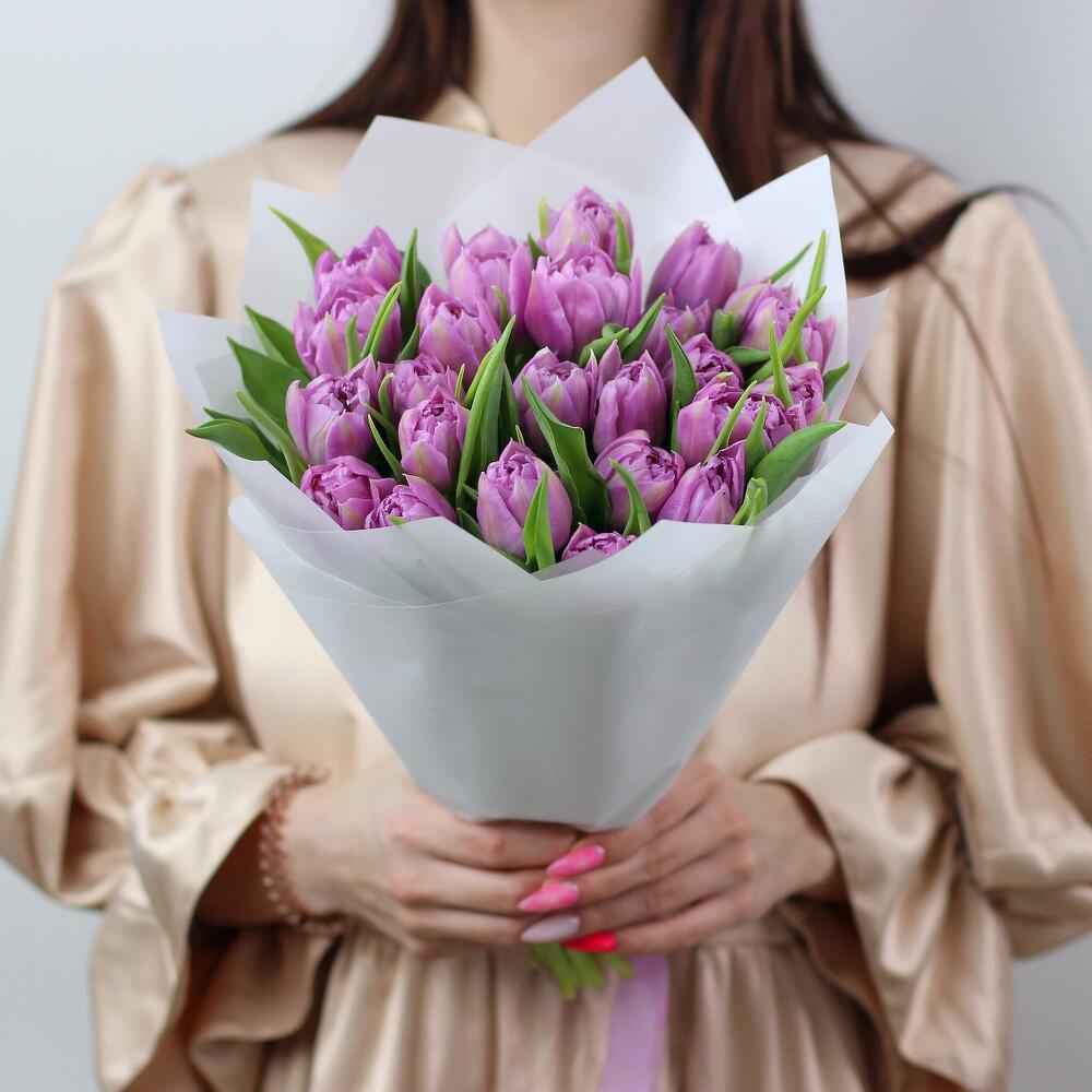 25 пионовидных сиреневых тюльпанов дабл прайс. Букет 200 Kimbirly Flowers