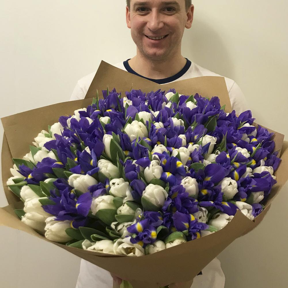 Букет из ирисов и тюльпанов "White Blue"