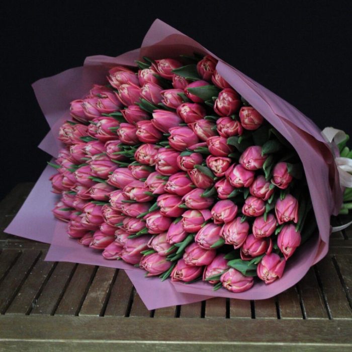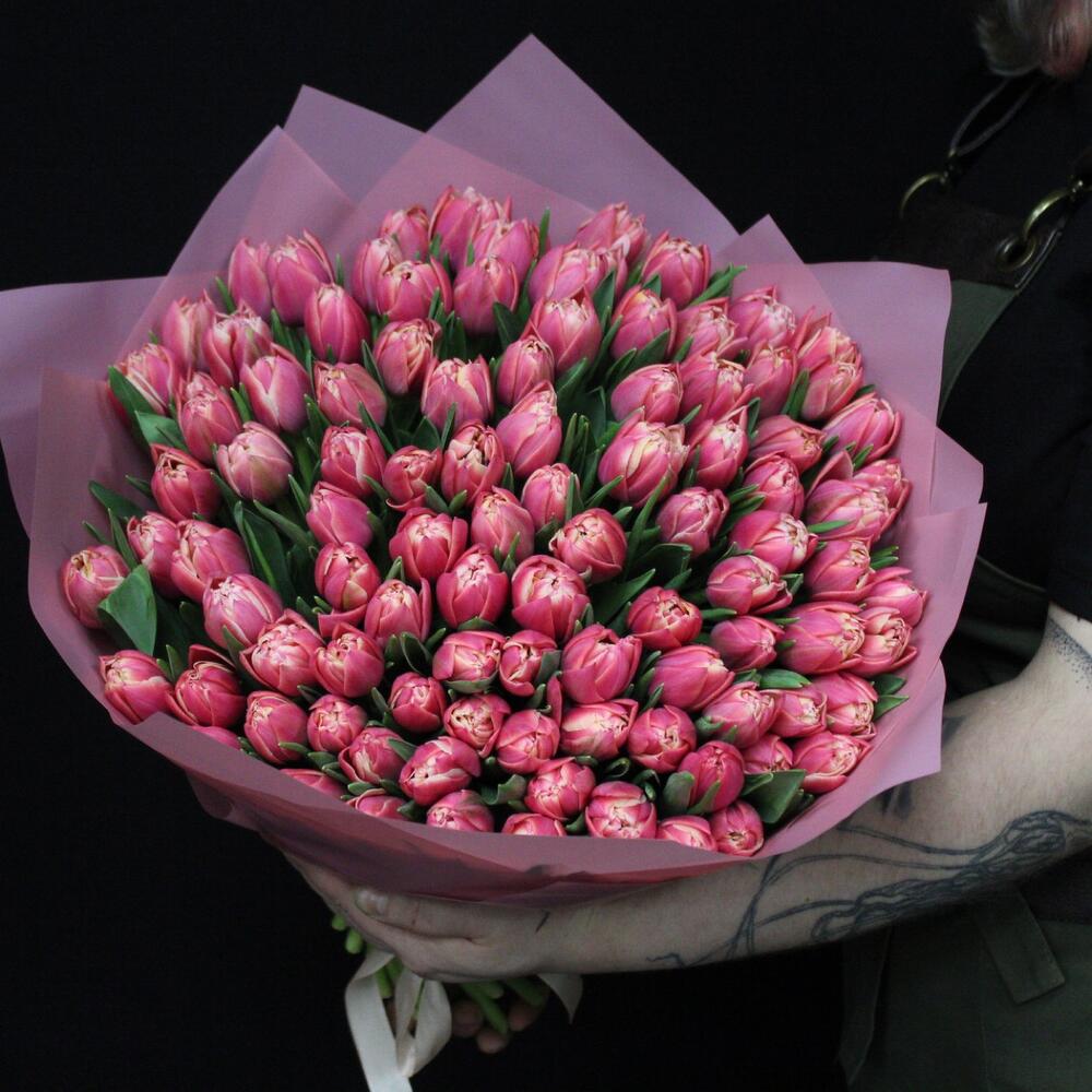 mono bouquet 110 из 101 пионовидного тюльпана сорта Columbus