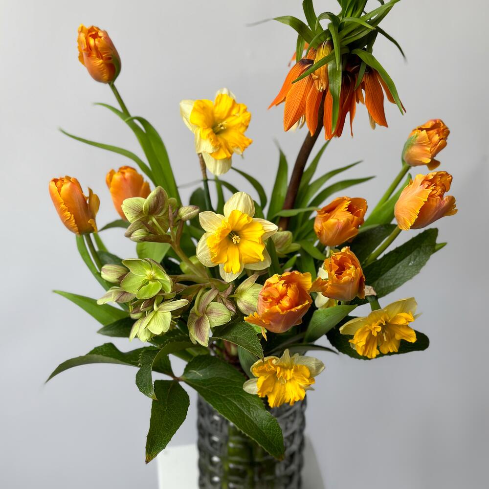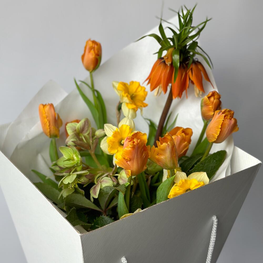 Тюльпан – 8 шт.Нарцисс – 5 шт.Хелеборус – 1 шт.рябчик – 1 шт.